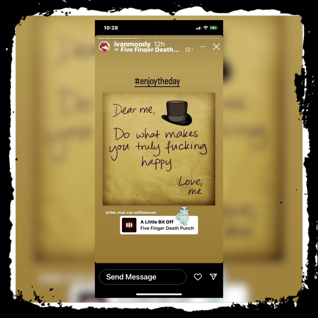 Jean-Claude Van DAMN there are many days that I just wake up feeling OFF. Guess what? THAT’S OKAY! I spent nearly an entire lifetime being ashamed of my “fuckin’ crazy” and even more so the train wreck I emerged from. That was then. This is now. THESE DAYS I FUCKING EMBRACE IT! Leave it to this gang of creatively genius, beautifully disastrous, oxymoronical MANIACS to help me figure out that not only is it okay for me to be a jacked up effing mess sometimes, it’s also okay for me to yell, scream, and holler it out loud any fucking time I want to! So, with that, make it a great day and here’s hoping YOU can embrace your “off days”, too!