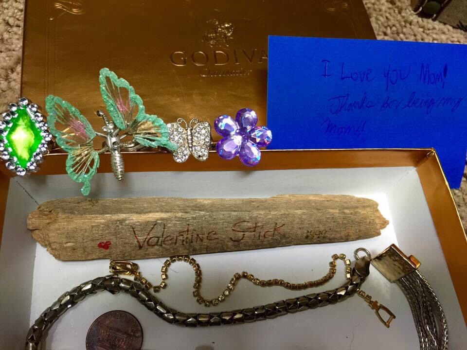 Last night, while I was in the closet pondering the idea of tackling Zack’s clothes and personal belongings (which, PS, are all still either hanging or sitting completely untouched and exactly as they were the last time he walked out of this house at 8:00pm on August 22, 2019), I stumbled upon the little box of all the trinkets and baubles my son has given me over the years, not the least of which is the box the Godiva chocolates came in itself! You see, it was empty when he secretly pulled it out of the trash at age eight on the day of my 30th birthday only to put a handwritten love note from him to me inside it. My favorite thing, however, is the Circa 1999 “Valentine Stick” that he wrapped in a napkin a few years before that at age seven.
