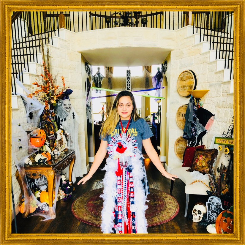 It’s all he ever wanted, it’s why he built this house, and this was one of the “firsts” in her life he was looking forward to the most … the very first picture of her all decked out in formal attire on the staircase he built for these moments. I know he was smiling as he watched this entire weekend as she reveled in her Freshman Year homecoming festivities. My heart is full as I memorialize this milestone in tribute to the many “wishes and dreams” he had for her!