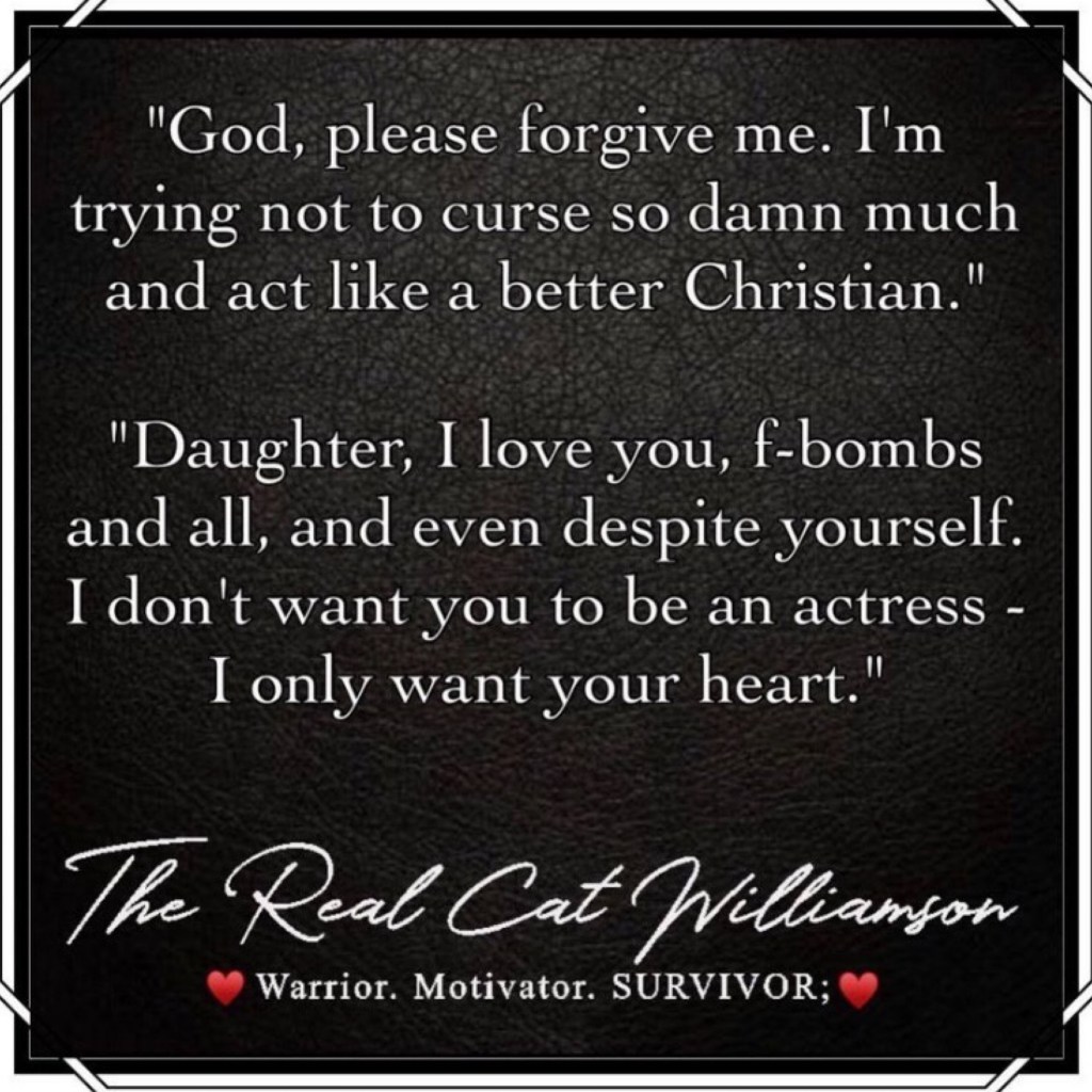 I know! I know! I’M WORKING ON IT! I PROMISE! I don’t want to let You down, I don’t want to let myself down, and I desperately don’t want to be a big ole “Jesus hypocrite” billboard for Your cause. I wholeheartedly believe that the deeply abysmal guilt I feel every time I drop an eff bomb is Your Holy Spirit telling me STOP, so as with everything else in my often crooked life, I am ever a work in progress. Please forgive me, once again, even though I know You already have, but oh, em, gee, what am I gonna have to do with myself? Eat a bar of soap? Guess I’ll just keep on trying.