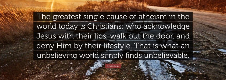 The greatest single cause of atheism in the world today is Christians who acknowledge Jesus with their lips and walk out the door and deny Him by their lifestyle.