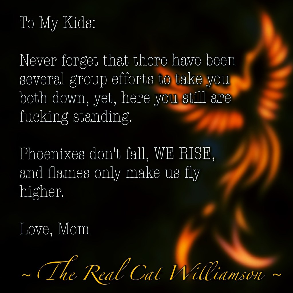 Okay, that’s all for now. Oh, wait, except for this: Phoenixes don’t fall – WE RISE – and we always stick together, even when we’re flying solo! I love all THREE of you!
