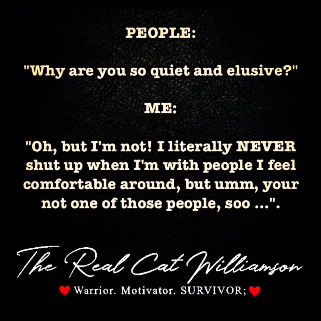 Look, it’s not as though I’m that hard to get along with, it’s just that I’m very particular about who and what I allow into my strange little bubble, and even more particular about the strings I allow to attach to my soul. For those who get it right, being “too close” to me is a veritable rabbit hole to wonderland! For those who don’t, umm, maybe not so much, because more so than not, I’ve usually already left the party before I get there. It doesn’t change the fact that if and when I’m truly comfortable with someone, I literally NEVER shut the fuck up. If you know, you know. If you don’t, you don’t. Otherwise? Sorry ’boutcha!