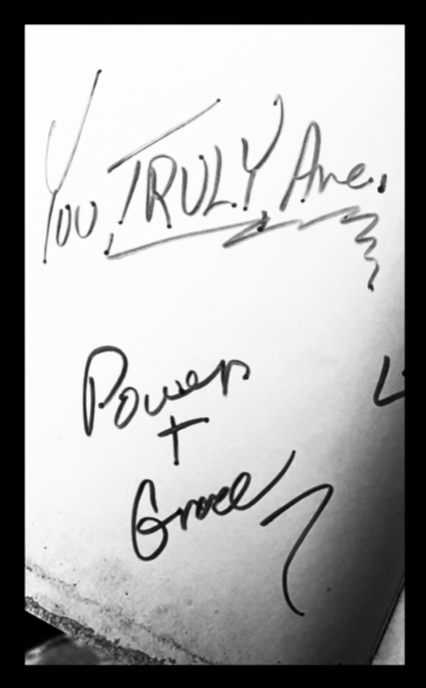 You know, I’ve been asked a couple times why I always write “power and grace” and “love and respect” … It takes two things to make it in this world: Power and grace. Being powerful enough to project and to be assertive and stand for what you stand for, but have it be graceful at the same time, and having gratitude for those that, you know, come in contact with you, and so on and so forth. Love and respect, he said, was the second half of that, because to have power, you have to show those two things ~ love and respect. To have grace, you have to own both of those things ~ love and respect.