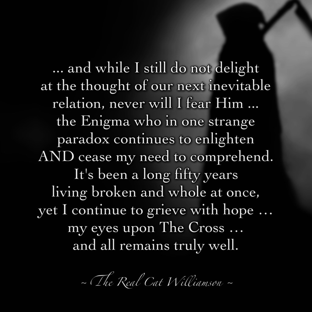 Then, I’ll be that soft breeze that brushes their cheeks and whispers hope into their ears, and every ray of light that sparkles in their eyes as they bask in the legacy I’m working on. I’ll be their Crazy Grandma Cat whose higher purpose was to change everything for our tree.