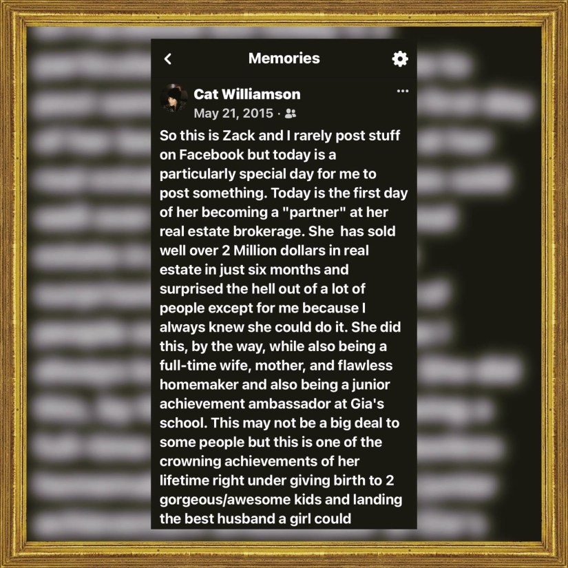 Hi everyone! It’s me, the REAL Cat Williamson, and I’m writing this to my kids just in case I’m gone tomorrow. Always remember that your mama was the badass phoenix QUEEN he left behind to handle things in his place in all her power, grace, and glory, and ALWAYS remember to be this IMPECCABLE with all your words. Someday they may actually save someone’s life.