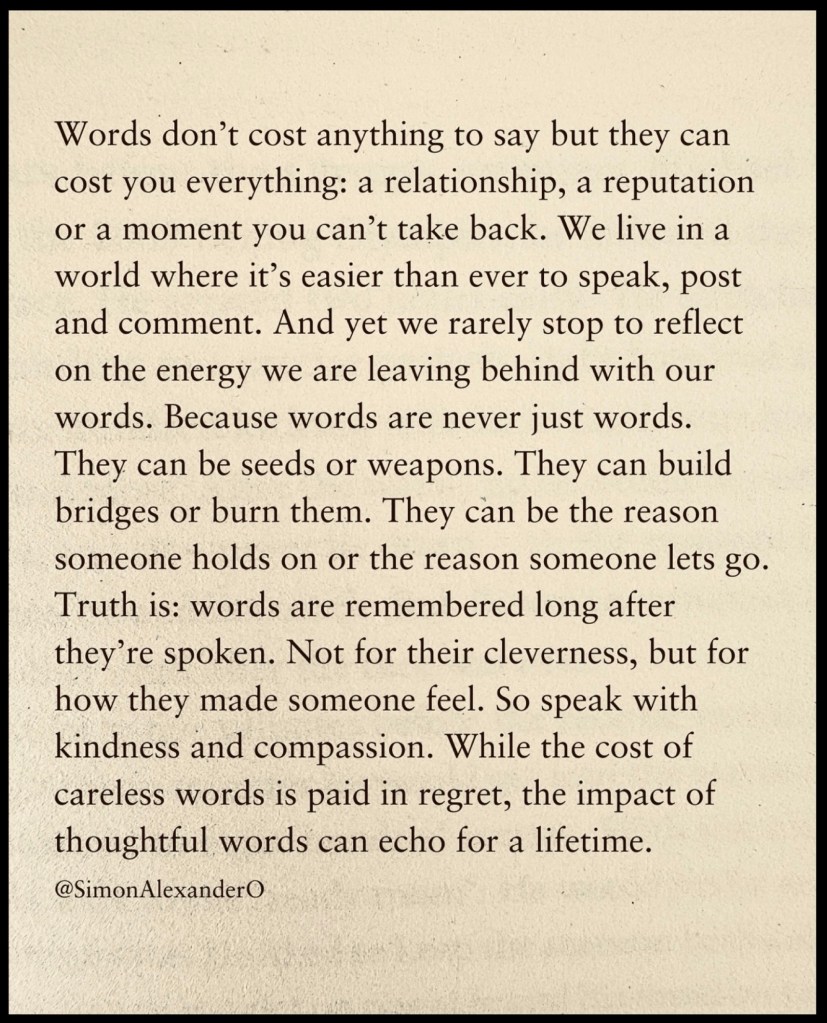 Oh, but you couldn’t be more wrong, my friend. Someone “ever” HAS been killed by words, let me assure you of that. While words themselves cannot physically force someone to choose to do harm, they can, indeed, incite it. Both the spoken and written word are the womb from which good things are born, and the sword upon which many tragic tales have fallen. This is why every “word” should be chosen impeccably, and why, yes, some insults are, indeed, deserving of imprisonment. If the words one speaks can metaphorically imprison the person receiving them in internal turmoil and ACTUAL hell, and thus potentially even cause their death, so, too, should the person who speaks such such words be imprisoned. Long story short? Be sure to watch your mouth, lest you end up choking on the very same poison you spew into the atmosphere. By the way, this is especially important when it comes to the words we speak into the ears of children, be them our own children or someone else’s. Many are the children whose bodies physically grew into adulthood, but whose hearts, minds, spirits, and fledgling wings were physically MANGLED at the receiving end of careless “words”. How do I know this? I AM ONE OF THEM!