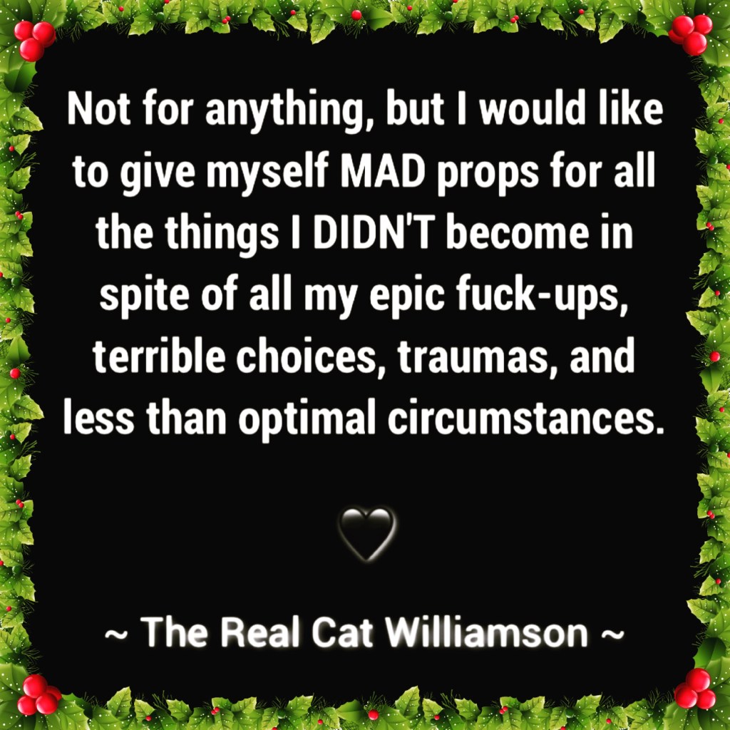 Hi everyone! It’s me, the REAL Cat Williamson, not the FAKE one! All this pain and suffering have been my greatest gifts! The bitter end WILL come in time, but the joy I have found in the sweet here and now keeps me alive!