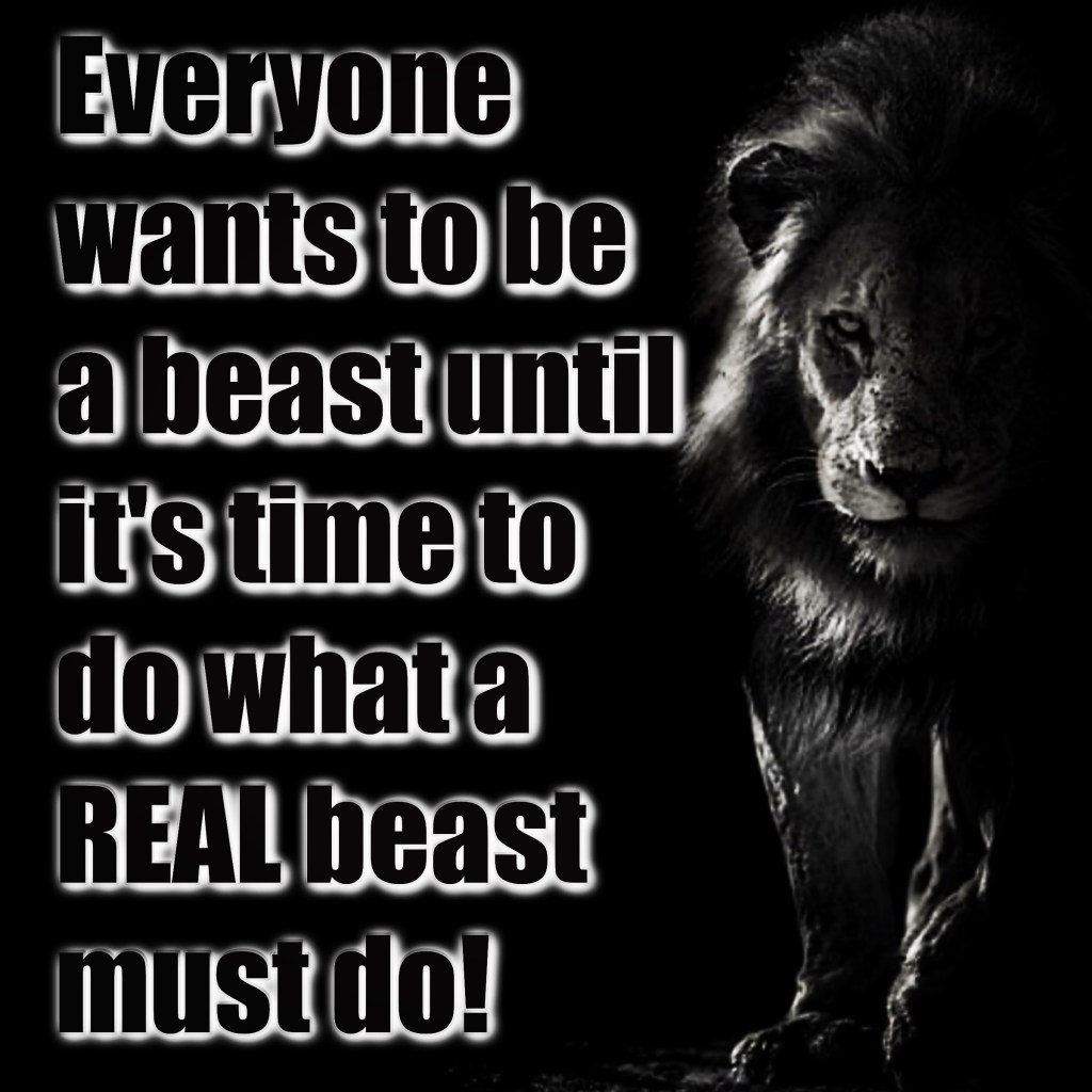 Hey, look, sometimes a beast really does have to do what the REAL beasts do! Does it get kinda messy sometimes? YUP! Am I the nicest, kindest, sweetest, FUNNIEST, sometimes most ANNOYING bitch on the face of the planet with an unfiltered and REAL truth bomb mouth that ain’t winning too many popularity contests right now? Umm, YUP! Do I doubt myself even a little? Fuck NO! Been there. Done that. That weak bitch is dead and this one won’t allow her resurrection.