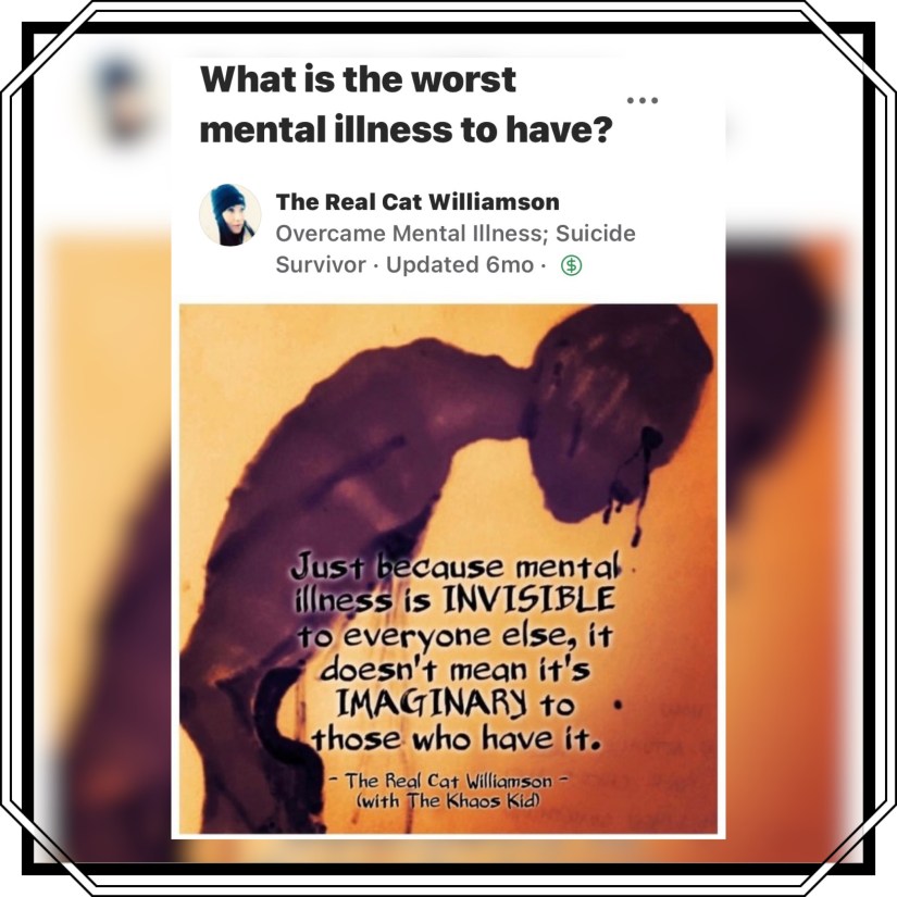 With that … BYE, mental illness! It’s me, CAT! Looks like YOU’RE beneath me, too! So, come at me again, bruh! I dare you! Momma NEVER takes her gloves off now, soooo: