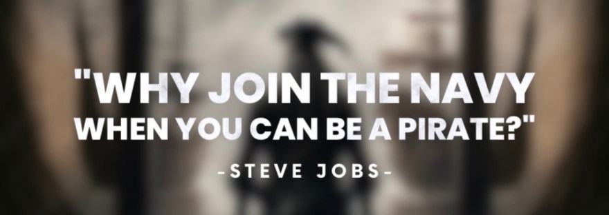 The late Steve Jobs, whose birthday is today, really did say it best! Why be in the Navy when you can be a pirate? Umm? HELLO? Ya think? Be a pirate! Be a Viking! Be an adventurer! Be ALONE but DON’T be lonely!