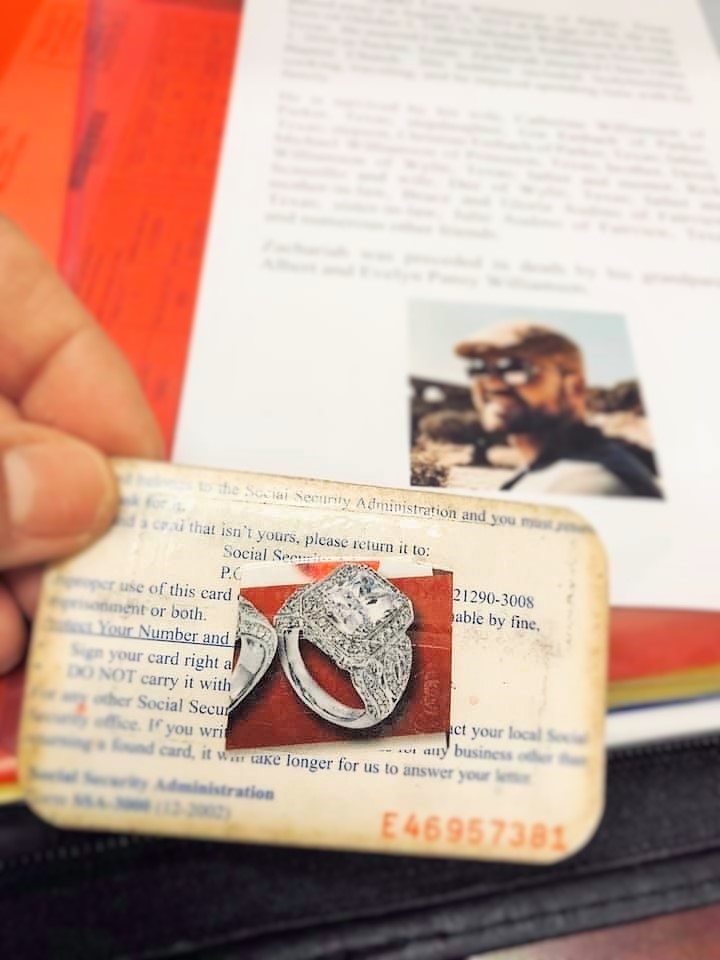 Oh, yah! That picture there at left? No, that’s not my diamond, but it is a picture of a ring I’d found in a magazine ad once upon a time when the king and I were waiting in a doctor’s office. It wasn’t until years later, the day after he was gone, that I found it while going through his wallet. It was taped it to the back of his Social Security card as a reference until the day would eventually came when he could have one just like it made for me and slap it on my finger. BAM! “My Big Mac!” Yes, I’m proud of it, and nope, I’ll never stop wearing it until the day Gia’s future husband comes calling for her hand and it passes to her in legacy.