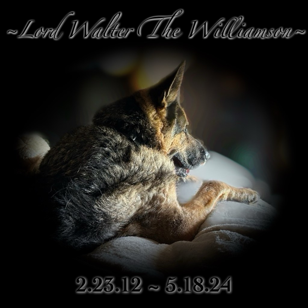And so, with that, I’ll see you on The Brighter Side, my handsome, where I pray to GOD that your dad really was waiting There for you with arms wide open. Only time will tell, I suppose. Until then, I love you “FURever”, Lord Walter The Williamson. ~ Mommy