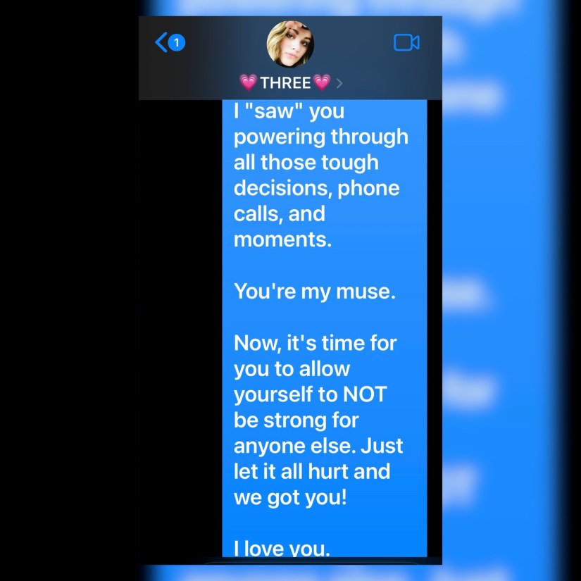 … and if I was ever given the cosmic option to somehow go back and unbreak one single piece of my heart or uncarry all of the heavy things I’ve GOTTEN to carry, I can honestly say with every single shred of my beautifully shattered soul that I wouldn’t want to change a things. Besides, if it was good enough for Jesus, it really WAS good enough for me, too, and I’m thankful I was chosen to live this life. Lol. If only that “me” from 11 years ago today who was most likely sitting at the desktop in the tiny little “desk closet” in our one- bedroom PALACE (since I’m fairly certain I didn’t have an iPhone yet at that point) could see me know, she’d be SO fucking proud to see how far we’ve OVERcome the burdens we’ve gotten to bear and how we NOW run headfirst into the storms instead of either running from or denying they exist. Hey, God? Thank You! No, really … THANK YOU! And hey, to my babies? This lightning’s gonna strike right through those hearts of yours again, ’cause this rain ain’t gonna stop, and you’ll feel every drop as they keep on dancing on your heads. But you gotta hold on … you gotta be strong … right here with me if it all goes wrong to keep you from harm … away in my arms … steer you away from the storm! When The Sun won’t come around and your world keeps washing out, I won’t let this love fall down. I’ll carry you. So, let’s run toward waiting lights, ’cause I know there’s better skies ahead. Sands through an hourglass … you’re floods are gonna pass … and we’ll still be standing, hand in hand! Love, Mom (“I’ll Carry Them“)