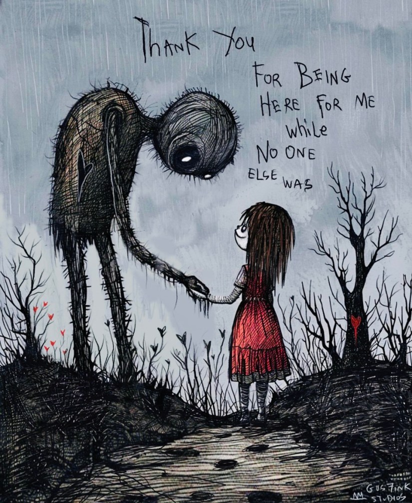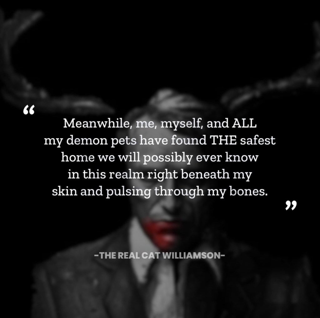 Meanwhile, me, myself, and all my pets have found THE safest home we will possibly ever know in this sanctuary I call “I”! As a matter of fact, we’ve even hung pictures and curtains in here and decorated with flowers and skulls! Besides, we don’t ever fall in love with people because they’re “good”, now do we? No! We only ever truly fall in love with people whose monsters from the dark side we can clearly see, recognize, and even walk beside of as they’re taking them out for a stroll. So, as for now, I guess I’ll just have to keep on loving all of me … the good, the bad, and the ugly! Guess what, people? IT’S ALLOWED! Happy Birthday, Sir Anthony, by the way, and shout out to this epic song that has become the voice of so many of the voiceless adult children who grew up in haunted houses and no fucking clue as to how to go about repairing the shattered MESS their parents left scattered across their floors.