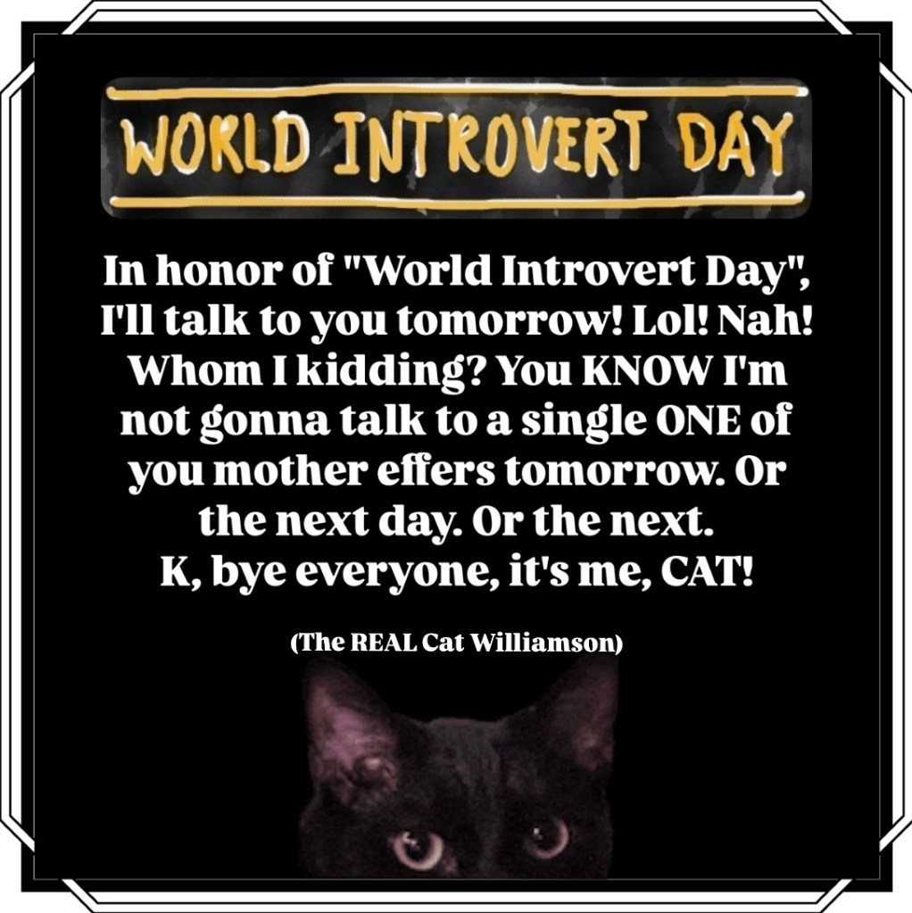 To know me is to love me or sometimes even hate me. Wait! Scratch that! To know me is to love me … or hate me … and only think you know me, but no, you actually don’t, ’cause for Christ’s actual sake, NO ONE really does (sometimes not even me), and also, I don’t really give two FUCKS whether you love me or hate me ’cause I LOVE ME enough for both of us! Bye everyone, it’s me, CAT!