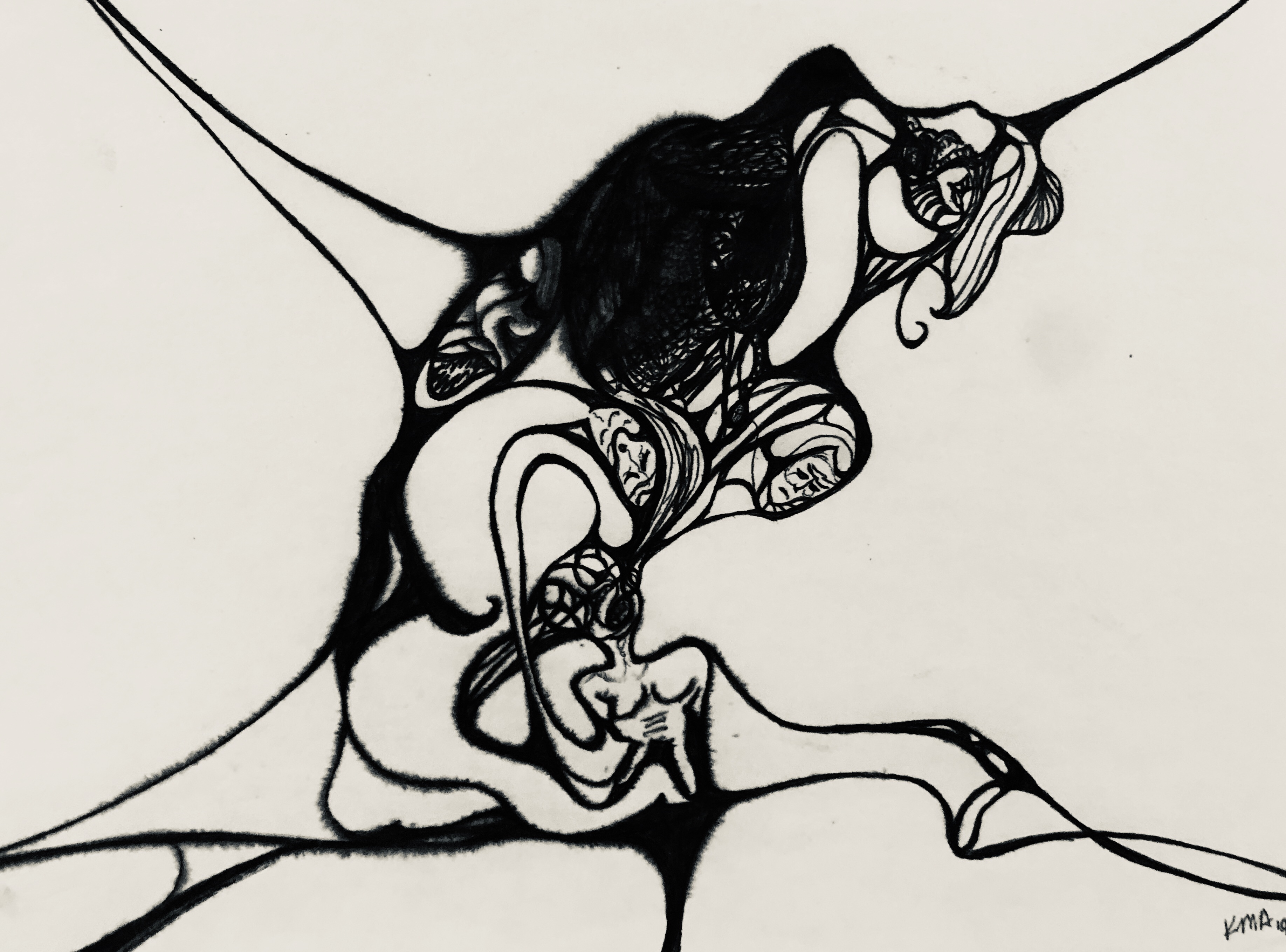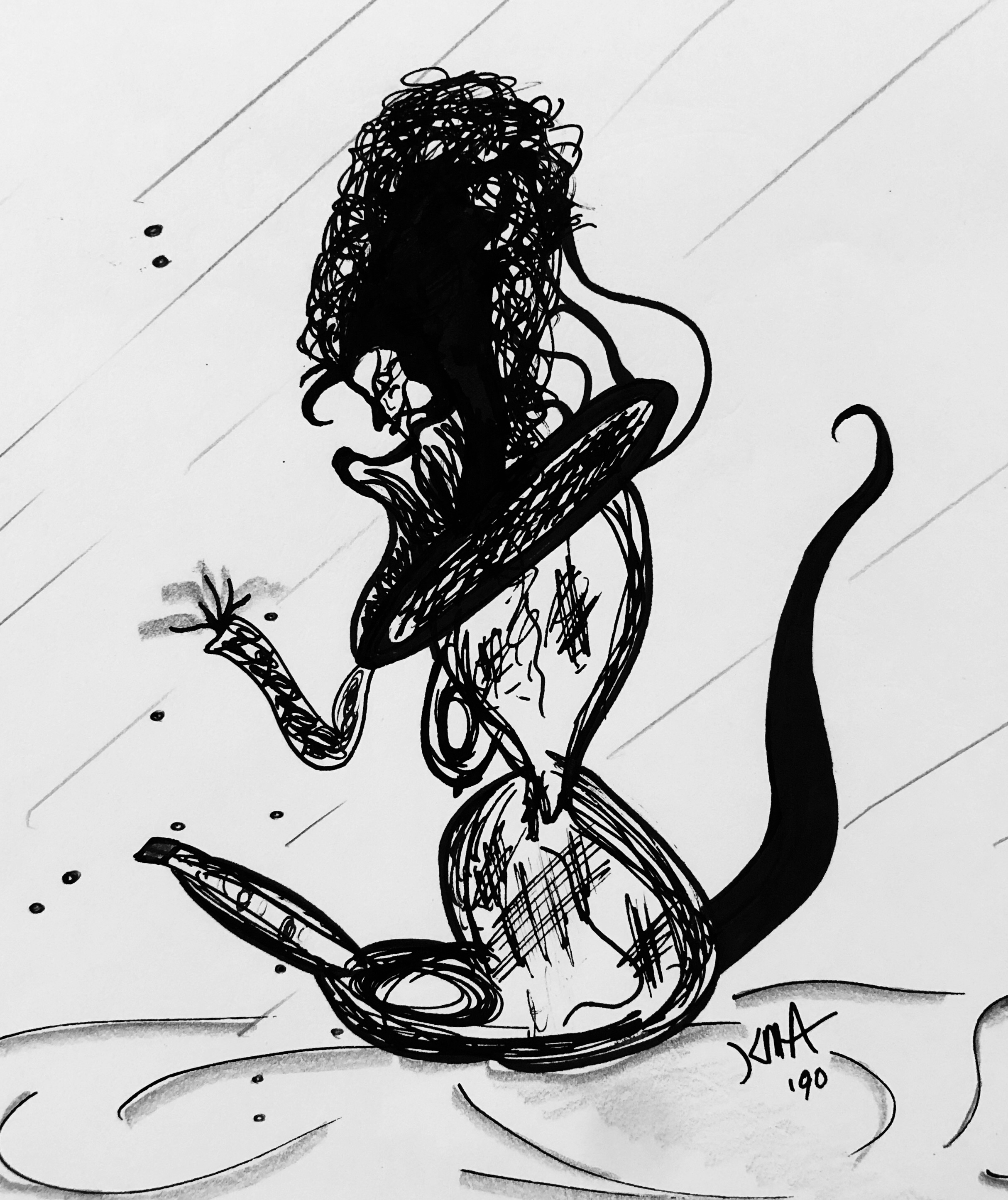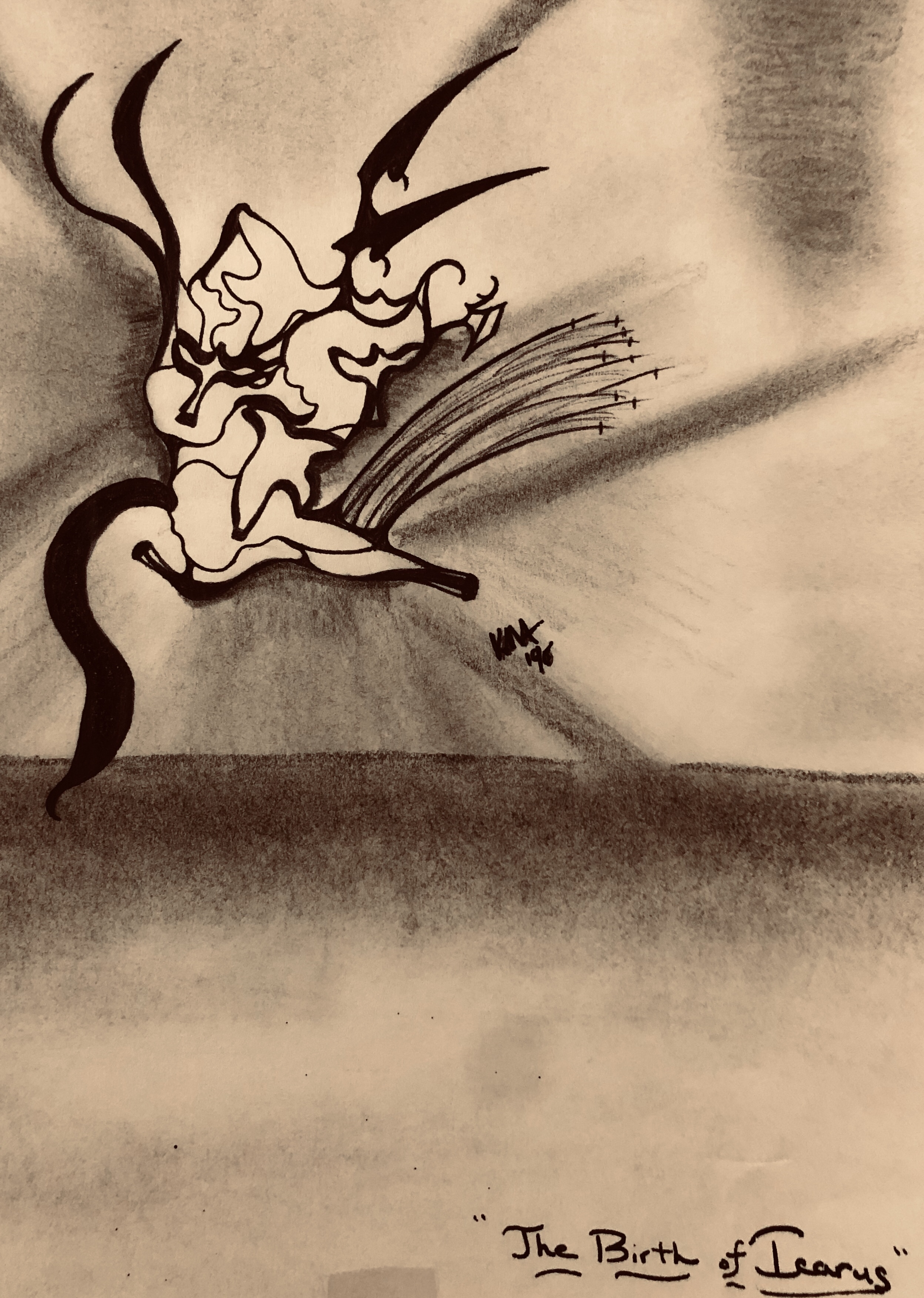 It’s important to note that while many of them were done in black and white ink, the majority were done in a mix of charcoal and lead and the cigarette ashes from my father’s ashtray. In fact, some of the later ones I did while I was in college were done with the cigarette ashes from His ashtray as well.
