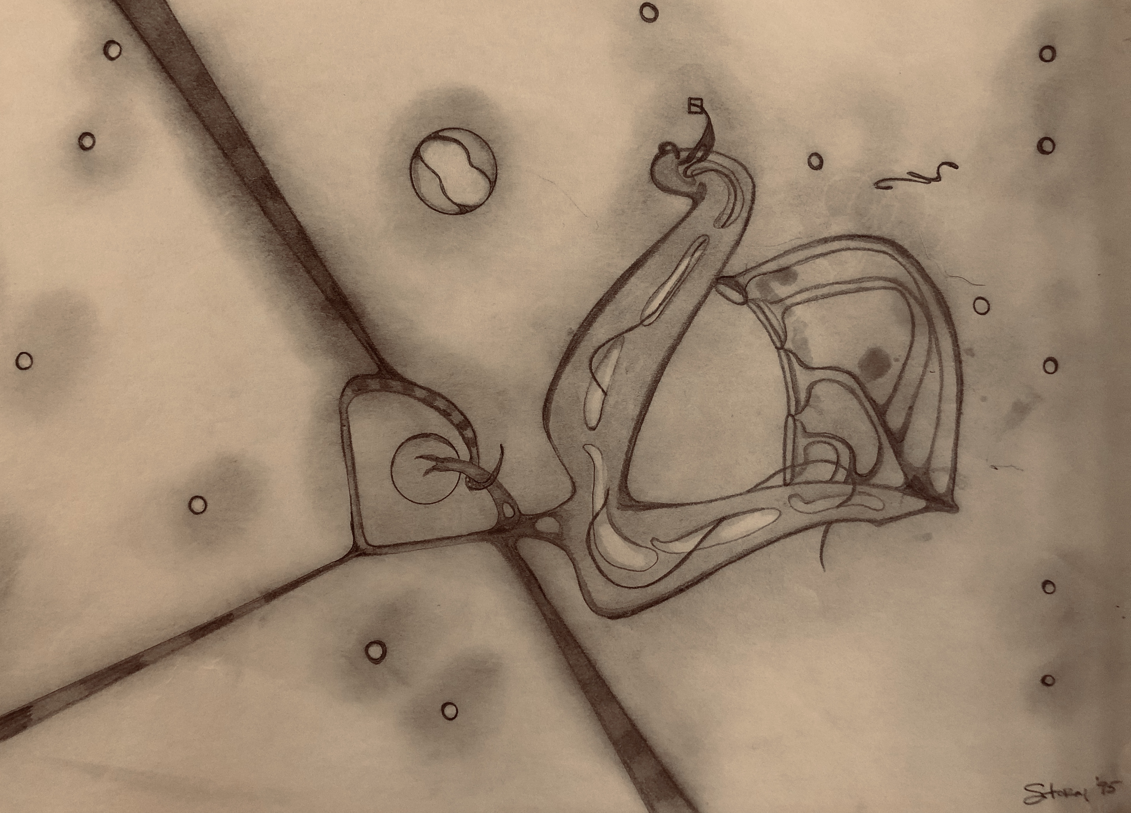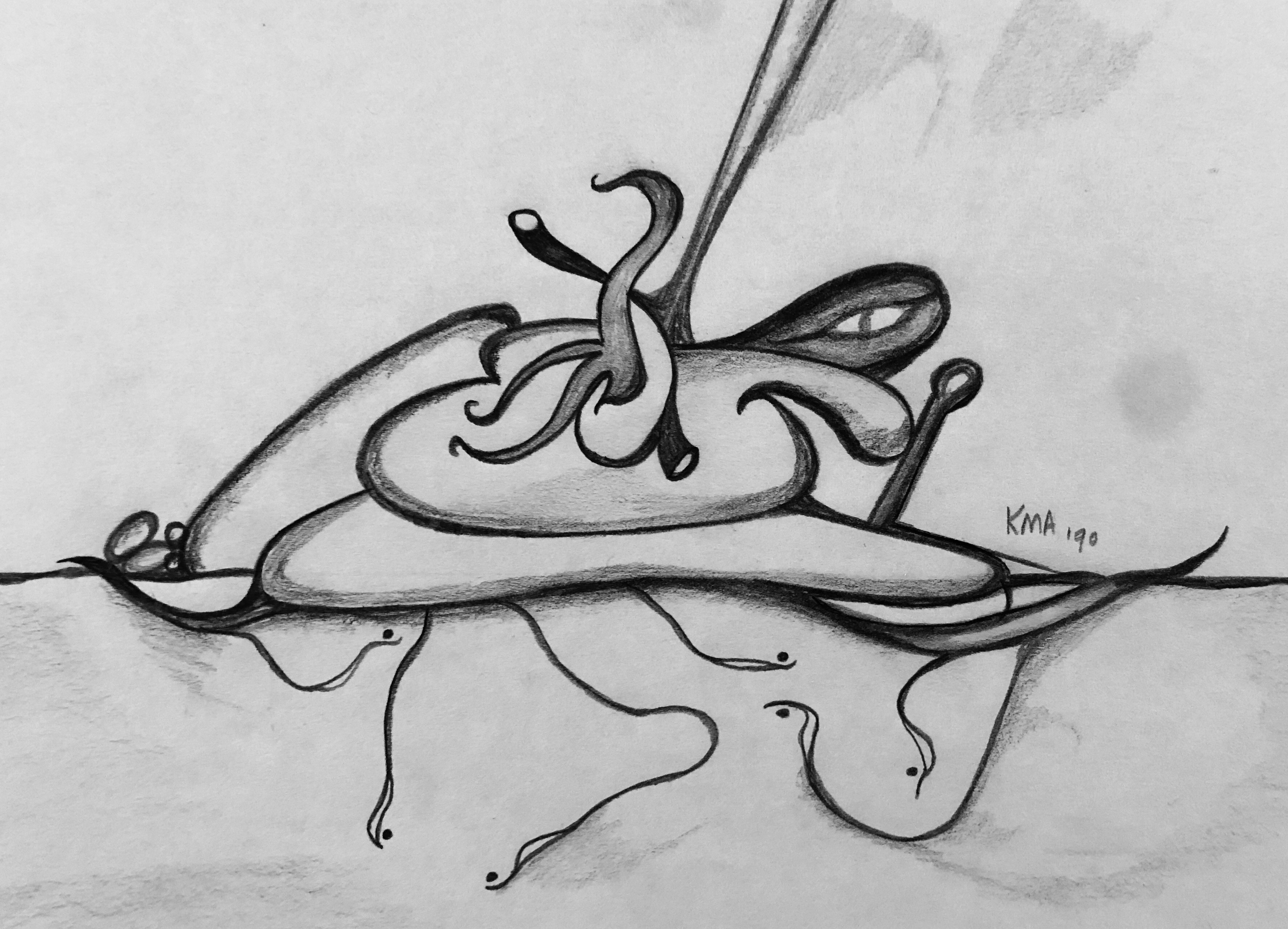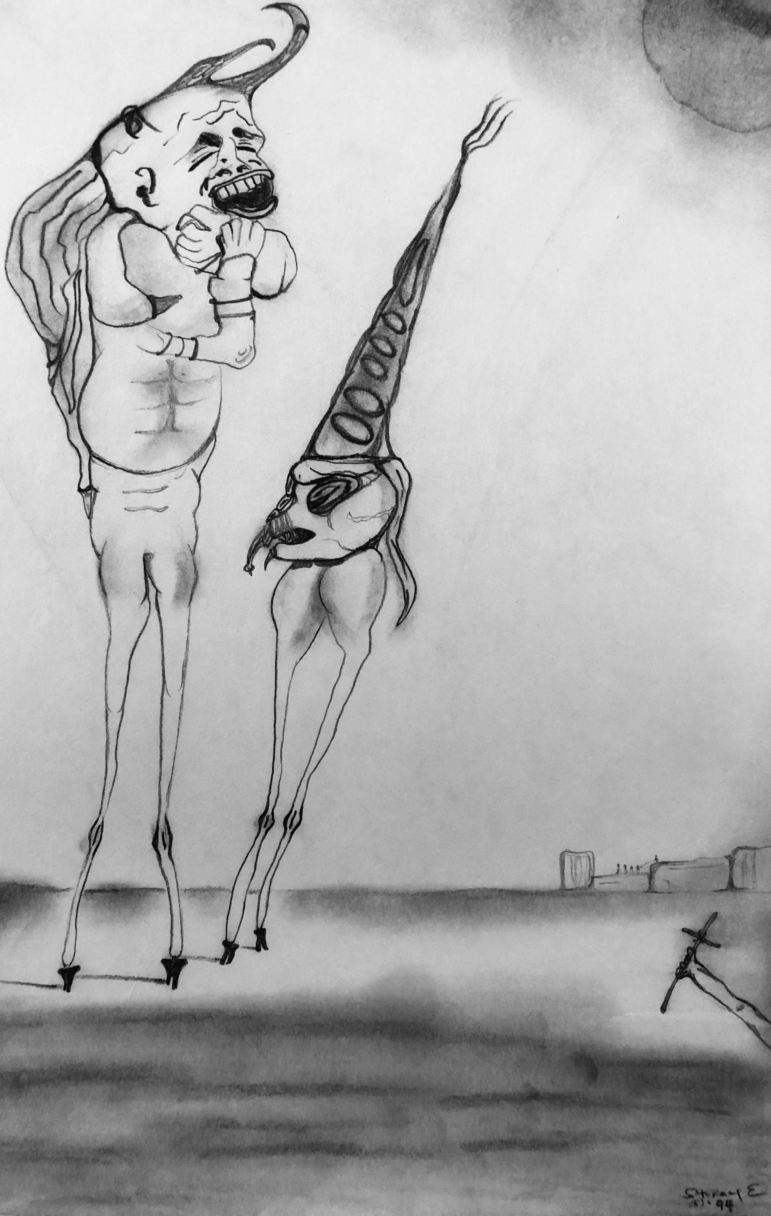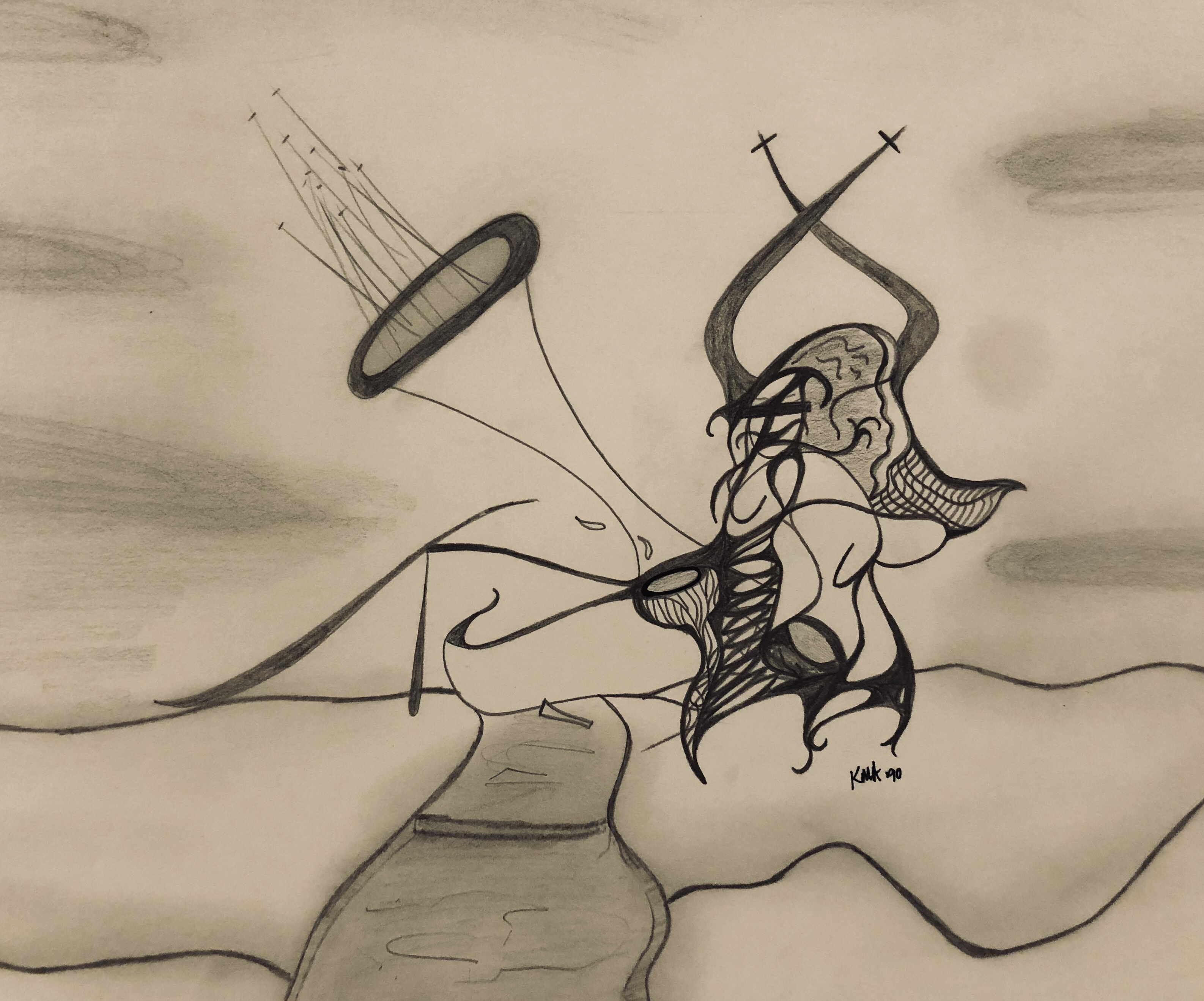 It’s important to note that while many of them were done in black and white ink, the majority were done in a mix of charcoal and lead and the cigarette ashes from my father’s ashtray. In fact, some of the later ones I did while I was in college were done with the cigarette ashes from His ashtray as well.