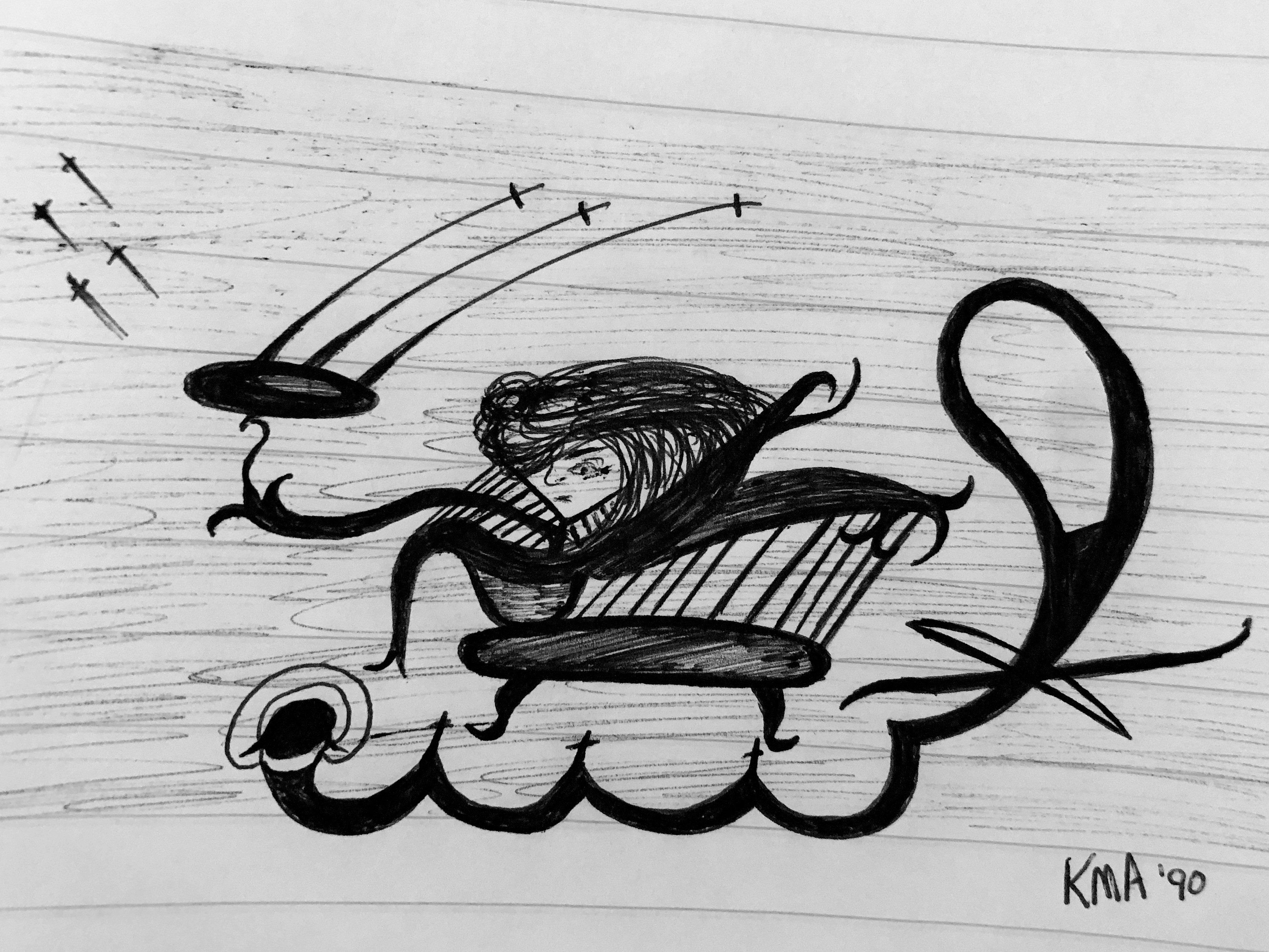 It wasn’t until I was 50 years old and pairing some sketches I’d done through my late teens and early 20‘s with some of my Diary entries that I was able to take a sobering look at what I once thought were simply creatures of my imagination, only to realize that they were the inner demons from my childhood screaming out loud on paper.