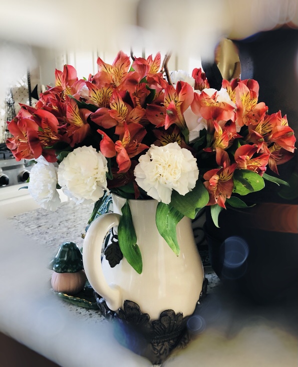The fresh flowers that are always on my counter these days (and will be until I take my last breath) may no longer be sent by him directly – but trust me when I tell you – they are, indeed, BECAUSE of him! He made damn good and sure that I knew I was priceless, valuable, and WORTHY of all the best and most beautiful things in this world every single day. The never-ending array of fresh flowers in this house for me (and sometimes even Gia) was just one of the ways he accomplished that. So, when I tell you that he made me a queen and QUEEN I shall be all the days of my life, “all the flowers” are just one of the many reasons why!