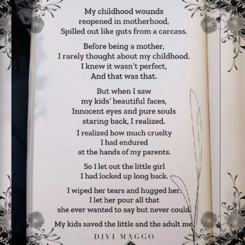 Your childhood wounds truly did reopen in the shadow of my motherhood then spill out like guts from a carcass. As you would always say, before seeing me as a mother to my babies, and then, too, as a mother to so many others, you rarely thought about your own childhood. You knew it was far beyond perfect … and that was that. But when you saw my kid’s beautiful face, innocent eyes, and pure soul staring back, you realized how much cruelty you had endured at the neglectful hands of your “parents”. If only you had let out the little boy you had locked up long back and wiped his tears and hugged him. If only you’d let him pour all that he ever wanted to say but never could, maybe you’d still be here with us. My kids saved both the little and adult me … but no one could save the little or adult you.