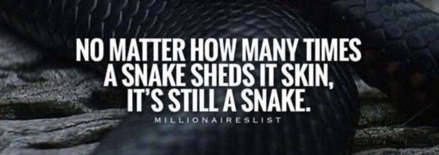 And so, with that, always remember that if and when you do get into a tangle with a snake, although they can shed their skin, they can never shed their nature. Likewise, although a person can lie about what and who they really are, the patterns in their lives never lie and will always reveal their nature! Just thought I’d share!