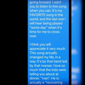 Zack used to whistle and hum all the fucking time, so, before Ivan talked about it, I’d already been captured by that whistling and listening to it over and over. It was one of the most ethereal moments I’ve ever experienced in my life. “From Zack’s soul, to God’s ears, to Ivan’s mouth”, then POOF! “A seemingly magical process of transformation”through the creation of the hauntingly beautiful whistle at the beginning of a song that echoed to me just like the many other voices from my past that I believe sending me messages: