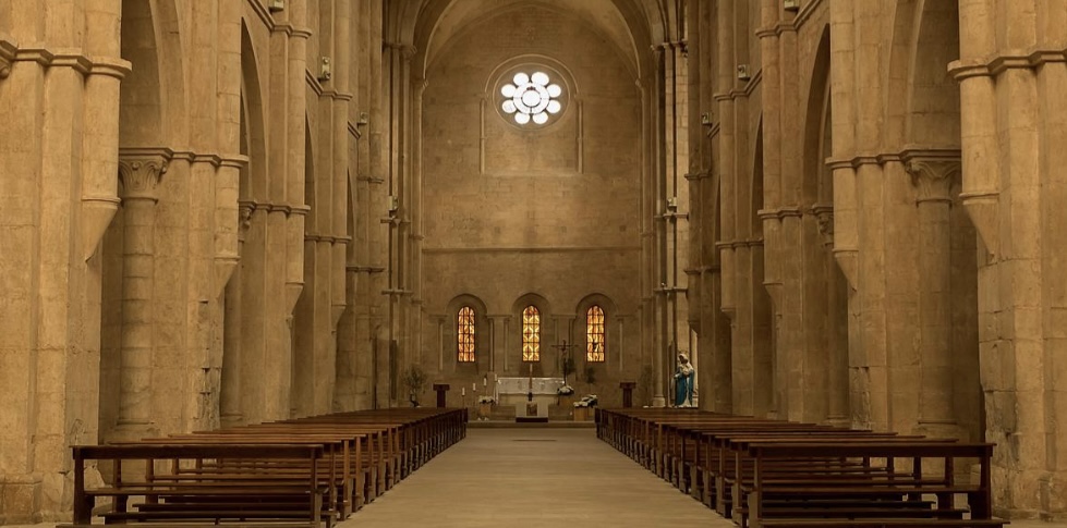 As Gia and I wandered down each more frugal, if not severe corridor, all we could do was inhale our speechless awe. But it wasn’t until we reached the altar nave that I truly had a moment, when the rose window perched high above a trinity of smaller windows reduced me to tears. It was Him! He was there! I could feel Him gazing down at me with as much pure love and joy as I felt gazing up at Him: