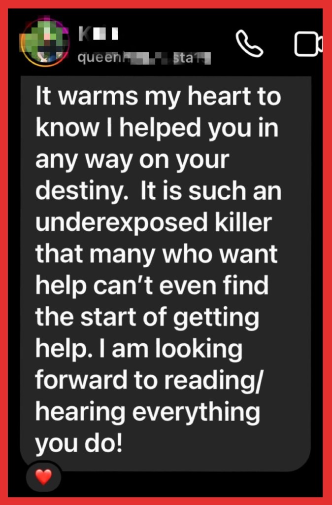 She had been fighting her dragon for thirty years.I think you are finding your calling. I’m a firm believer that things happen to us for reasons and sometimes it’s the hardest things that make the biggest impact on others. I know without a doubt there are lives out there ready and waiting for you to connect.Your story alone is so powerful and inspirational that you may save some other human from feeling his words, so, I thank you from the depths of my heart and soul for putting your story out there for those who truly need it.